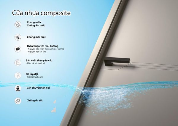 Cửa nhựa Composite có nguồn gốc từ Đài Loan, hiện đang rất phổ biến tại thị trường này. Nhờ vào đặc tính nhẹ nhàng, bền bỉ với thời tiết, dòng cửa này ngày càng được ưa chuộng và dần thay thế các loại cửa truyền thống như gỗ, nhôm, sắt...