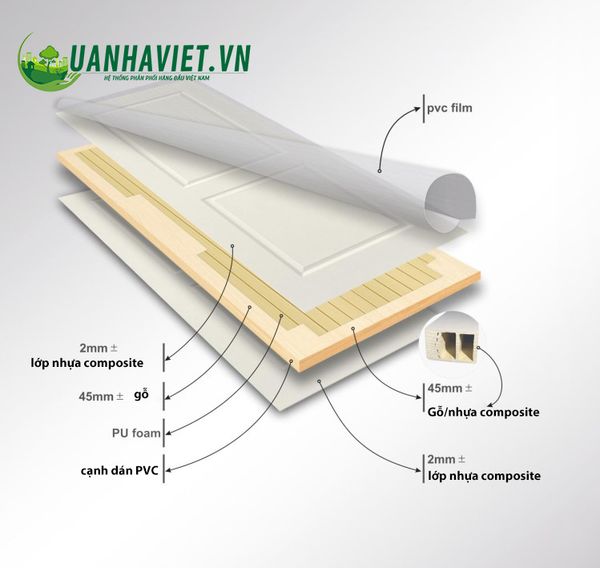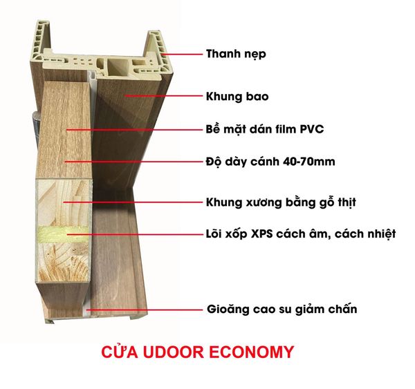Cửa nhựa composite Udoor được thiết kế với cấu trúc chắc chắn, bao gồm: