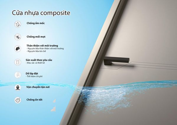 Cửa nhựa Composite có nguồn gốc từ Đài Loan, hiện đang rất phổ biến tại thị trường này. Nhờ vào đặc tính nhẹ nhàng, bền bỉ với thời tiết, dòng cửa này ngày càng được ưa chuộng và dần thay thế các loại cửa truyền thống như gỗ, nhôm, sắt...